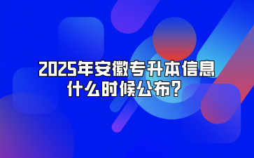 【导读】有同学问2025年安徽专升本信息什么时候公布?安徽专升本网已经为大家准备好了相关内容,希望对大家有所帮助!