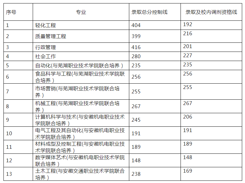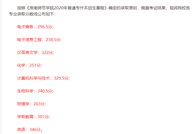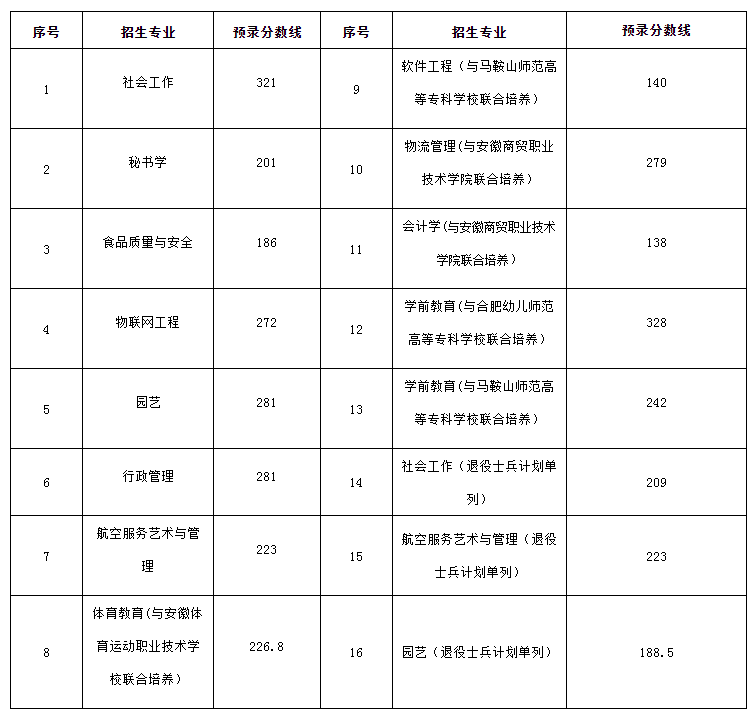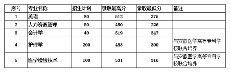 2021年安徽专升本院校录取分数线汇总(参照2020年)
