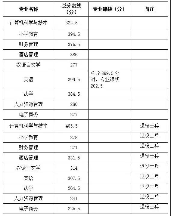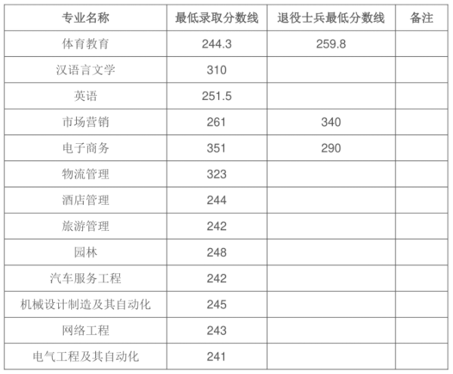 | 序号 | 录取专业 | 录取分数线 普通考生(含退役士兵) |