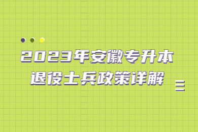 以上就是关于2023年安徽专升本退役士兵政策详解的简要介绍了,希望大家在安徽专升本考试中能够取得自己心仪的成绩。想知道更多专升本考试的相关资讯,如安徽专升本常见问题、招生学校、考试动态、招生专业等。敬请关注安徽专升本考试网。