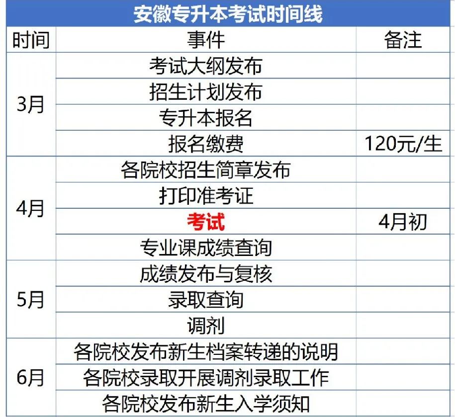因此,2023年专升本考试如果在4月份进行,那么一般安排在4月1日-2日或者22日-23日,参考已经确定考试时间的云南、福建、山西均是在这两个周末。2022年安徽专升本的原定考试时间安排在4月8日,由此推测2023年安徽专升本考试时间大概率是4月1日-2日,也就是说,23年的考试时间应该会提前!我们在备考时,可以把最后截止时间也就是我们说的“ddl”定在3月底。万一考试提前,那我们也能临危不乱,如果考试没有提前,那就还有几天时间再次进行查漏补缺,冲高分。不管是专升本备考也好,四六级、期末考试等等也好,大家尽量把自己的“ddl”提前一点,这样能促使自己更抓紧时间备考,不用临到头了来“一晚上创造奇迹”。至于政策发布时间,2022年是在3月初发布,各院校招生计划于3月17日发布,报名时间是3月18日开始。那我们可以合理预测,如果考试时间会提前的话,2023年的政策及其他信息发布时间或许也会稍微提前一些。考试大纲很有可能在2月份就会公布了!