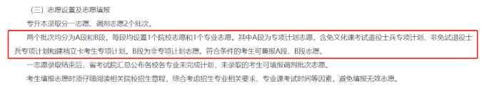 (包括含免文化课考试退役士兵专项计划、非免试退役士兵专项计划和建档立卡考生)可以同时填报A、B段的志愿;