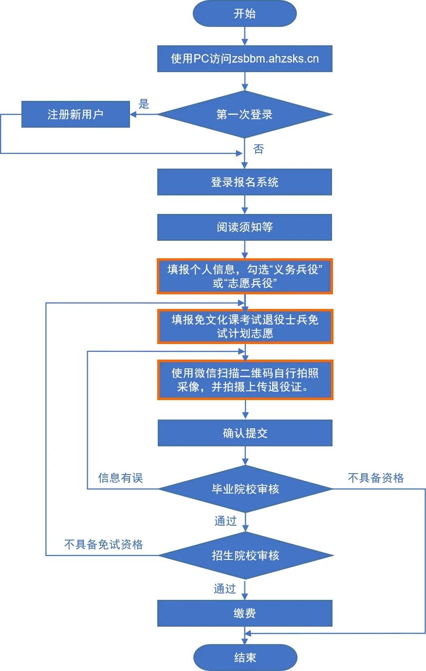 三、填报免文化课考试退役士兵专项计划志愿的考生报名流程