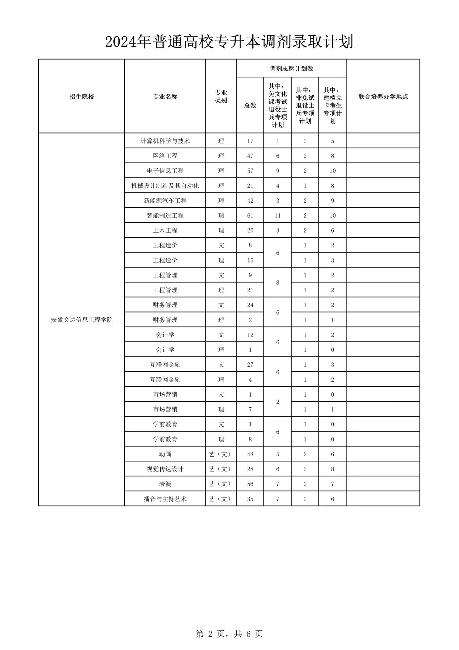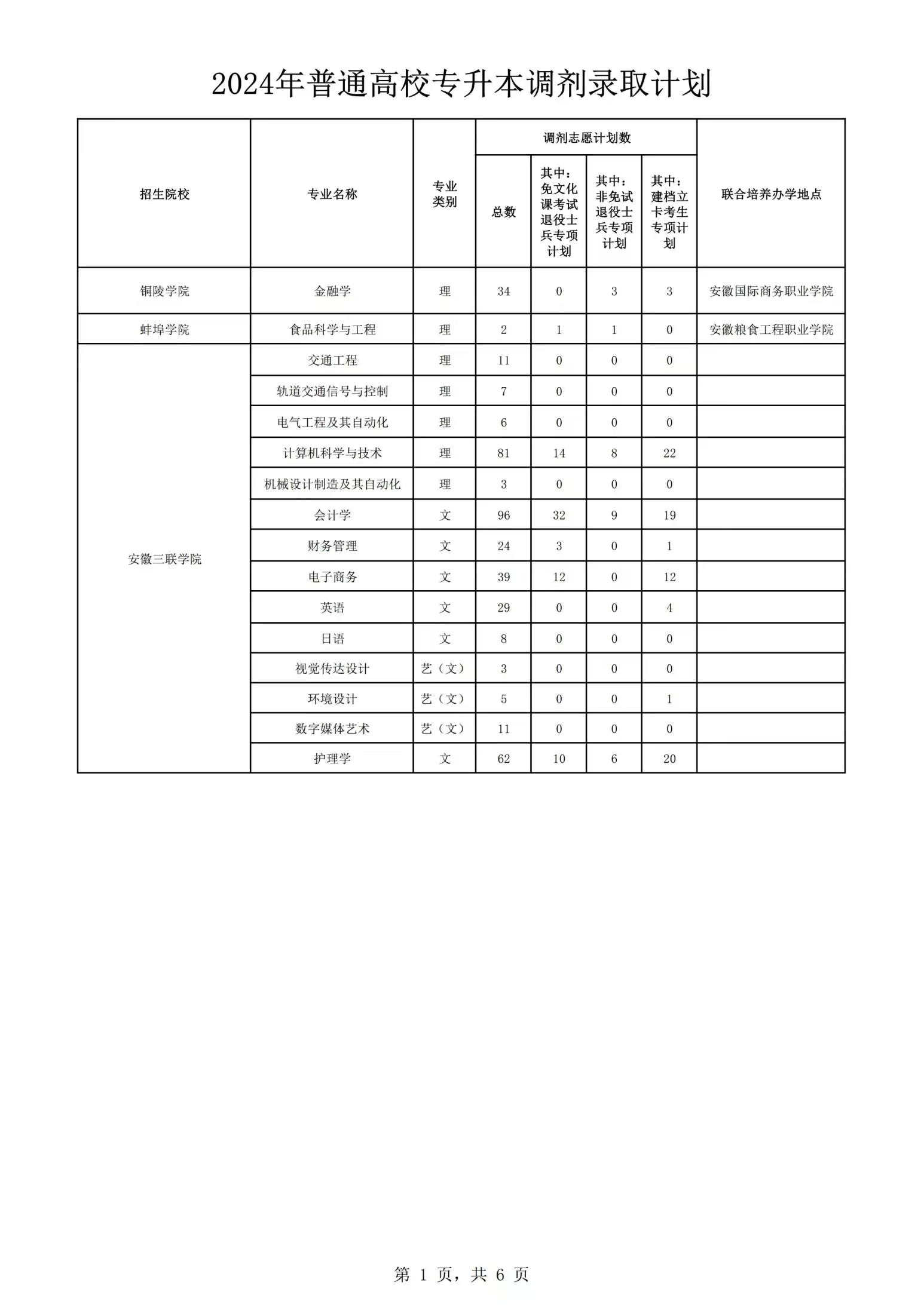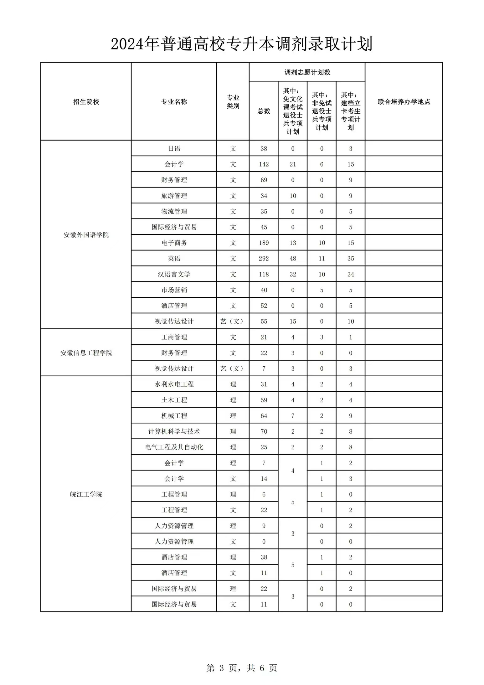 【导读】有同学在找2024年安徽专升本调剂志愿录取计划,安徽专升本网已经为大家准备好了相关内容,希望能够对大家有所帮助!