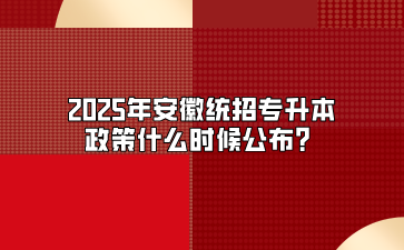 【导读】有同学问2025年安徽统招专升本政策什么时候公布?安徽统招专升本网已经为大家准备好了相关内容,希望能够对大家有所帮助!