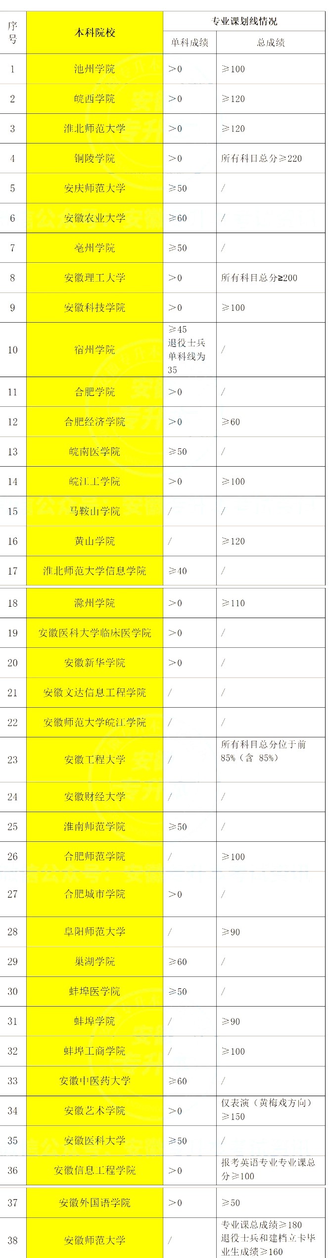 以上就是关于2021年安徽专升本各院校专业课合格线划定简要介绍了,希望大家在2021年安徽专升本能够取得自己心仪的成绩。如有更多想要知道安徽专升本院校的相关资讯,如专升本招生院校、考试动态、招生专业等。敬请关注安徽专升本(www.ahsxez.com)。