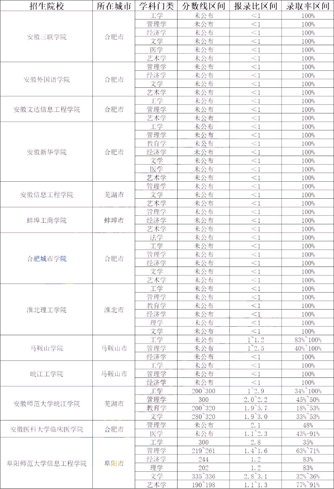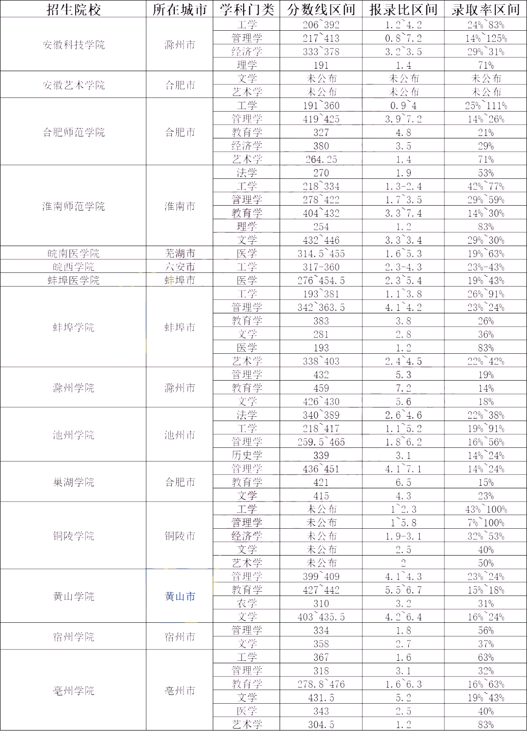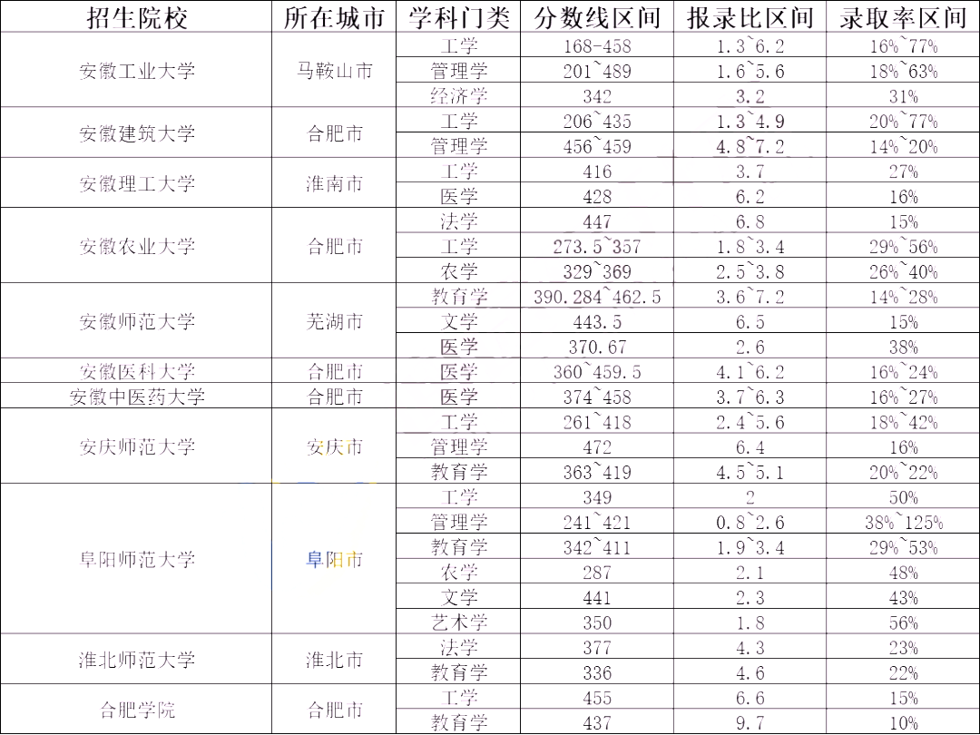 40所丨2024年安徽专升本院校难度分析盘点