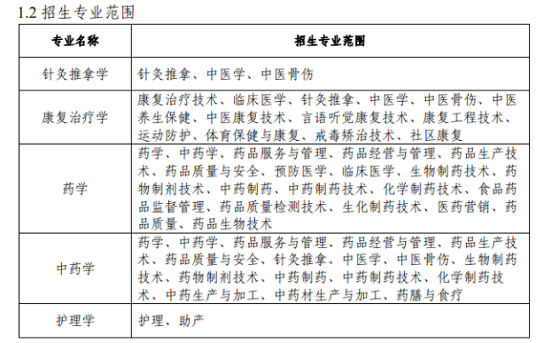 以2023年安徽中医药大学的招生专业范围为例: