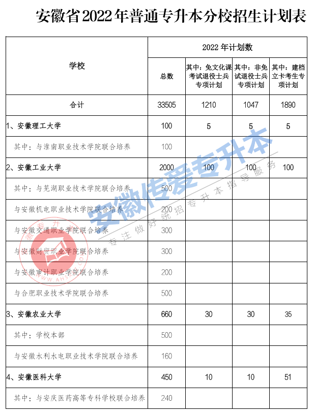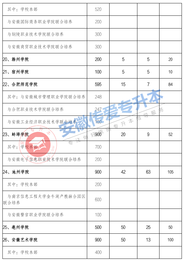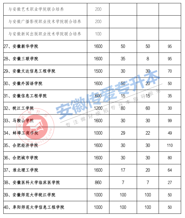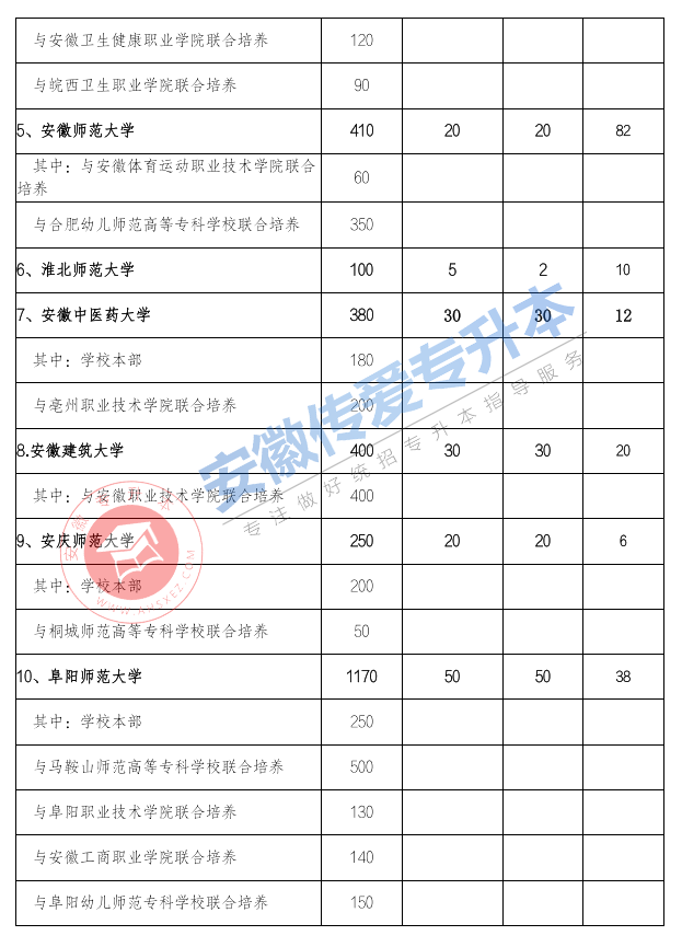 以上就是关于2022年安徽专升本拟定招生计划汇总表的简要介绍了,希望大家在2021年安徽专升本能够取得自己心仪的成绩。如有更多想要知道安徽专升本院校的相关资讯,如专升本招生学校、考试动态、招生专业等。敬请关注安徽专升本(www.ahsxez.com)。
