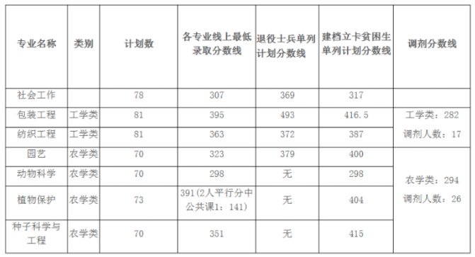 护理学计划招生100人,录取合格考生共76人,其中建档立卡1人,计划单列,录取分数线为281分。