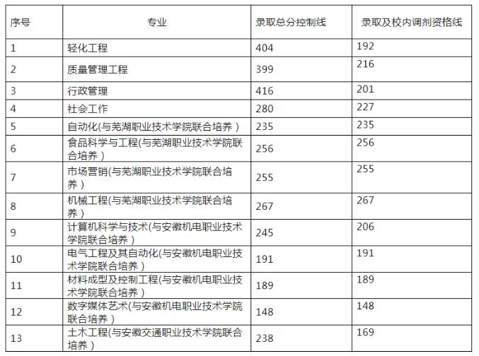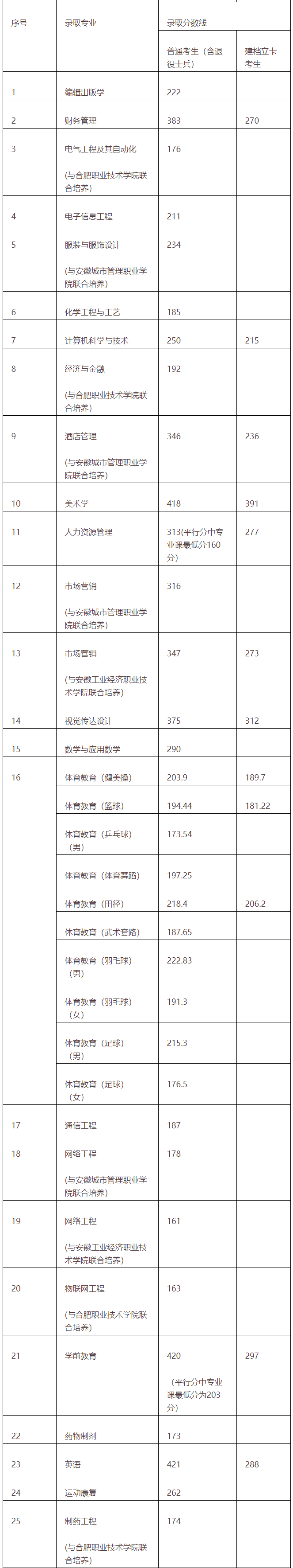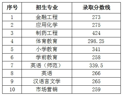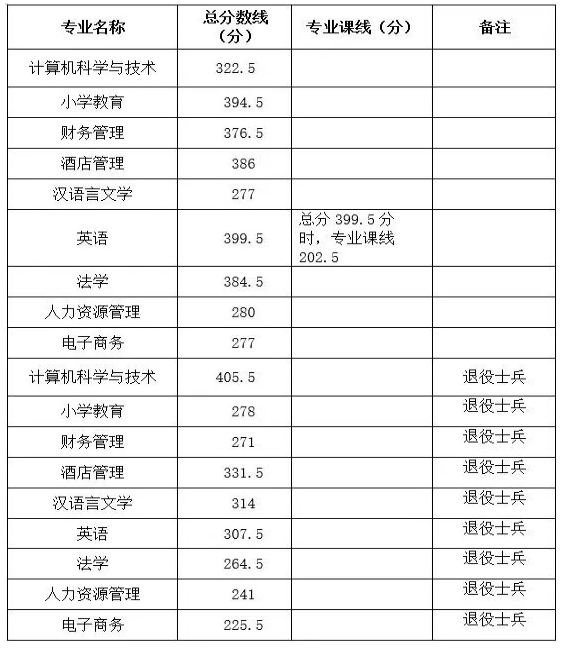 按照《淮南师范学院2020年普通专升本招生章程》确定的录取原则,根据考试结果,现将我校各专业录取分数线公布如下: