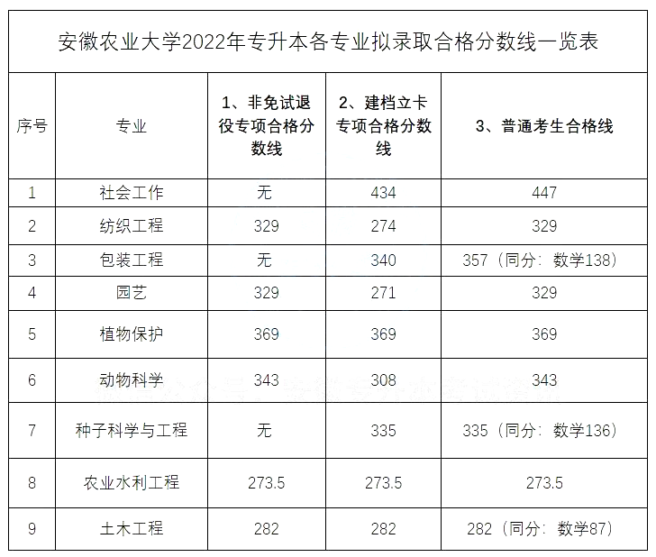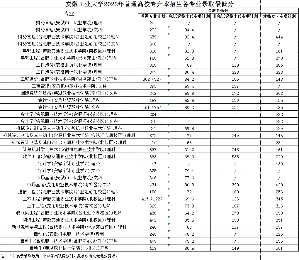 以上就是关于【27所】2022年安徽专升本录取分数线汇总的简要介绍了,希望大家在安徽专升本考试中能够取得自己心仪的成绩。想知道更多专升本考试的相关资讯,如安徽专升本准考证打印、招生学校、考试动态、招生专业等。敬请关注安徽专升本考试网。