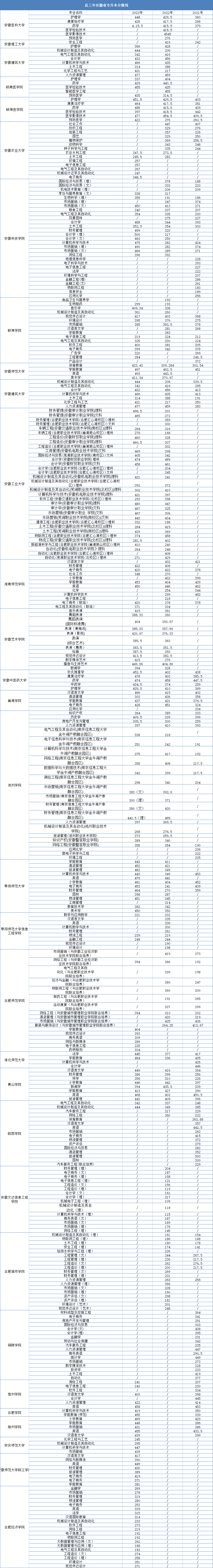 近三年安徽公布各专业分数线的院校并不多,所以数据不全面,但其中也涵盖了大多数的热门专业。