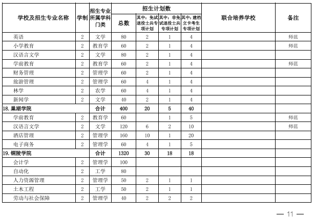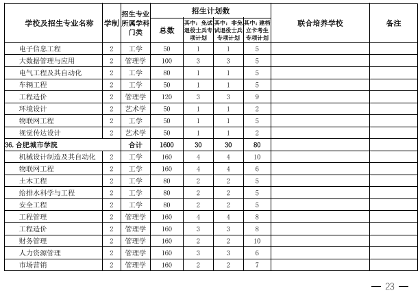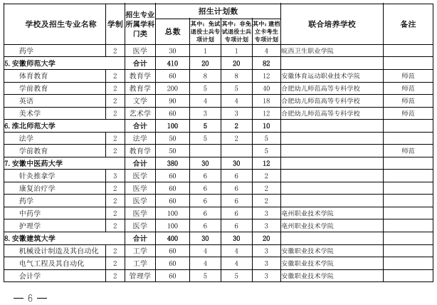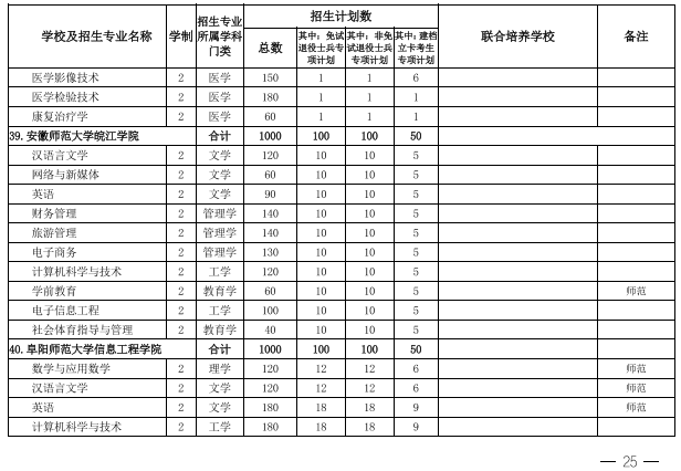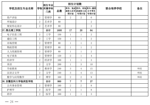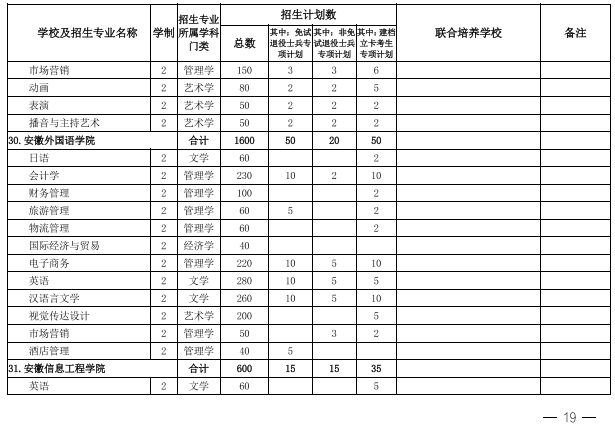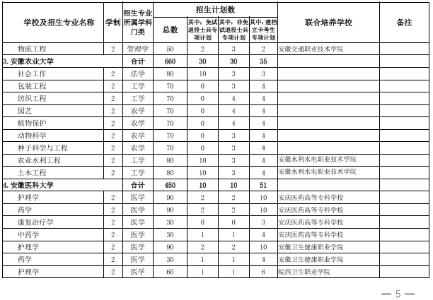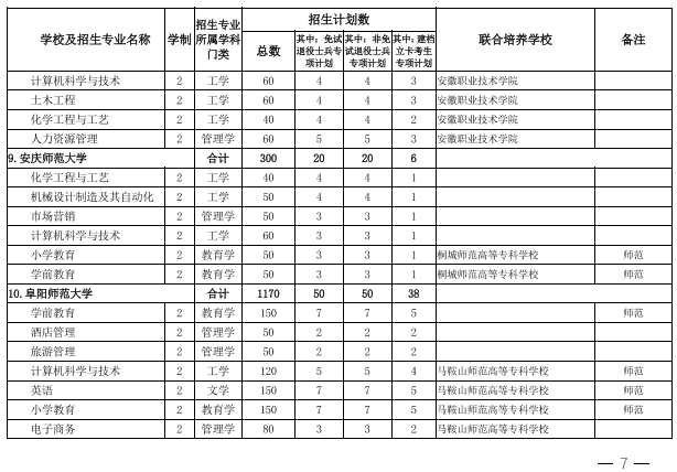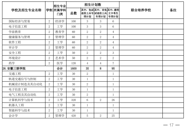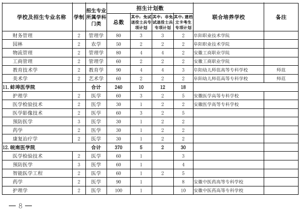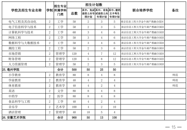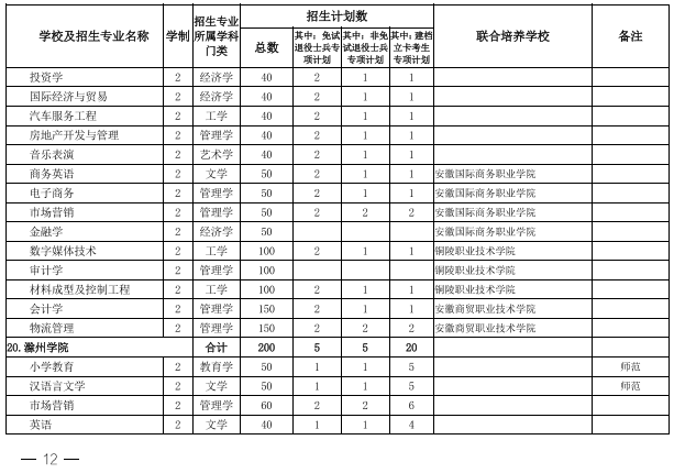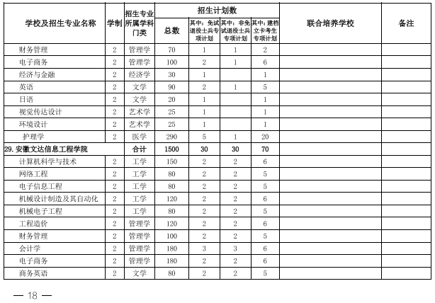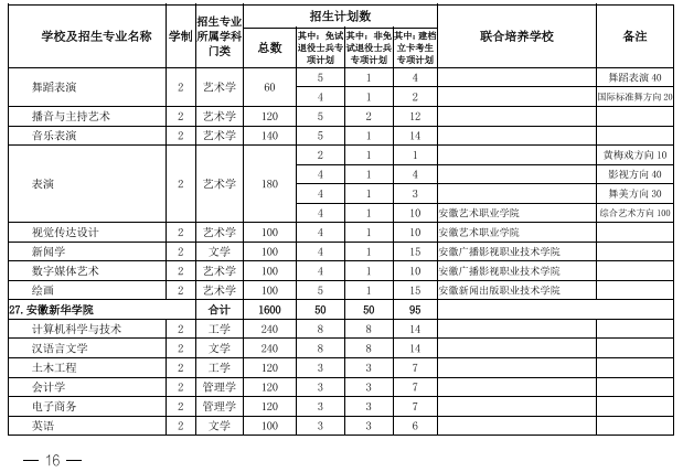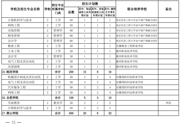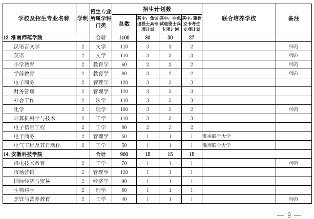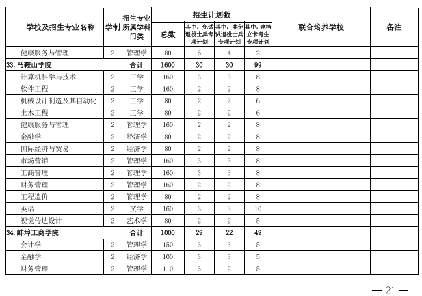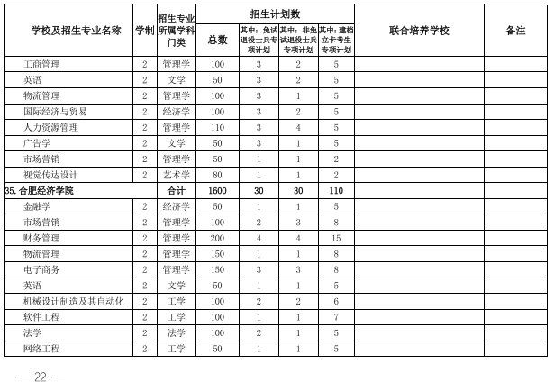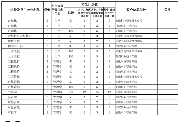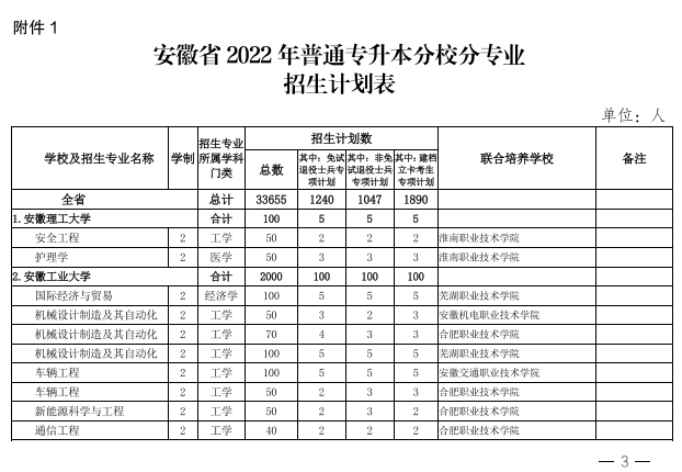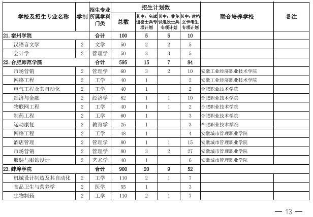 2022年安徽省专升本学校名单和专业