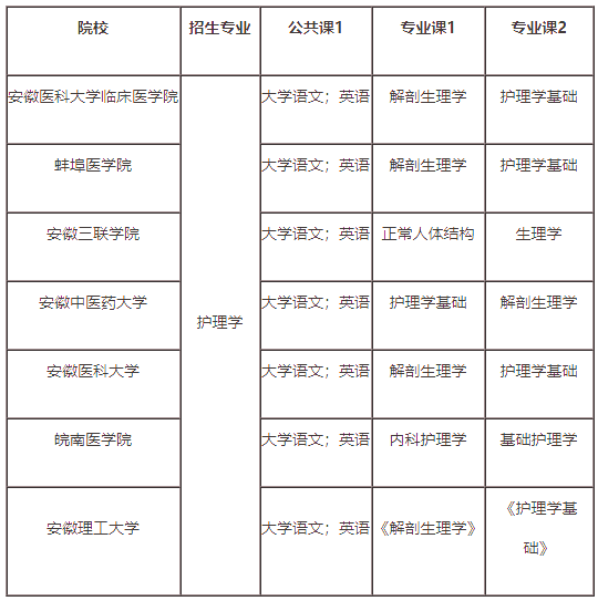 安徽专升本护理学考试科目