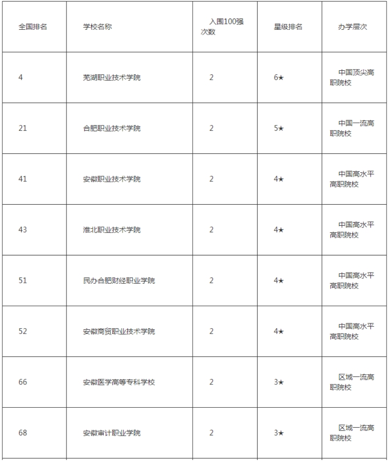 安徽省专科学校排名第3名:安徽职业技术学院;