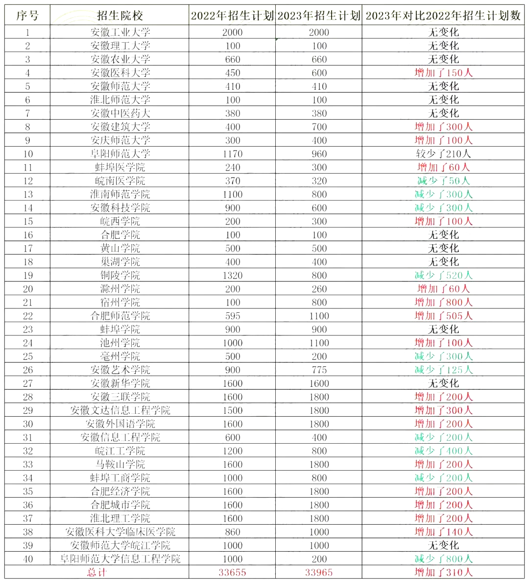 每年的招生计划都不同,安徽省自2020年扩招政策后,每年招生名额都在增加。不过速度和数量都在放缓: