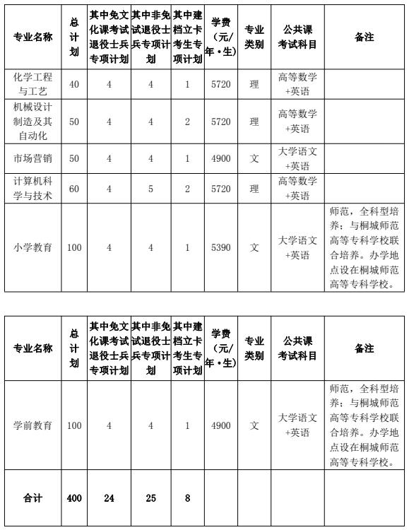 2024年安庆师范大学专升本招生计划(参照2023年)