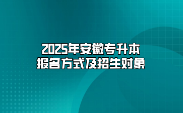 【导读】有同学在找2025年安徽专升本报名方式及招生对象,安徽专升本网已经为大家准备好了相关内容,希望对同学们有所帮助!
