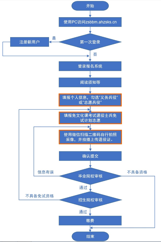 填报免文化课考试退役士兵专项计划志愿的考生报名流程