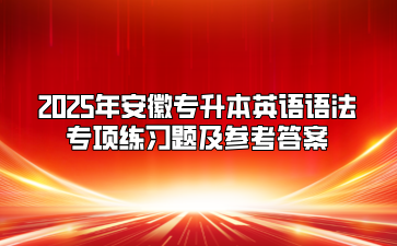 【导读】有同学在找2025年安徽专升本英语语法专项练习题及参考答案,安徽专升本网已经为大家准备好了相关内容,希望能够对同学们有所帮助