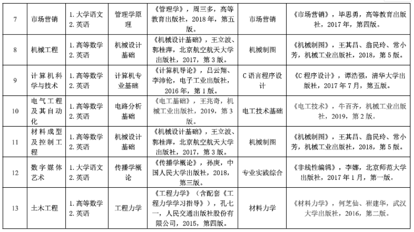 2021年安徽工程大学专升本考试科目(参考2020年)