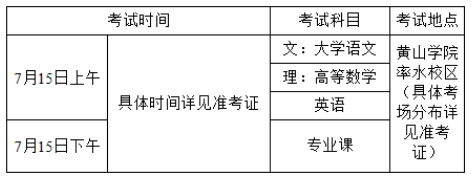 2021年黄山学院专升本考试时间(参考2020年)