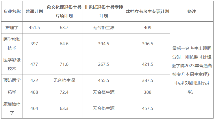 以上就是关于2024年蚌埠医学院专升本录取分数线的简要介绍了,希望大家在2024年安徽专升本能够取得自己心仪的成绩。如有更多想要知道安徽专升本院校的相关资讯,如安徽专升本招生学校、考试动态、招生专业等。敬请关注安徽专升本(www.ahsxez.com)。