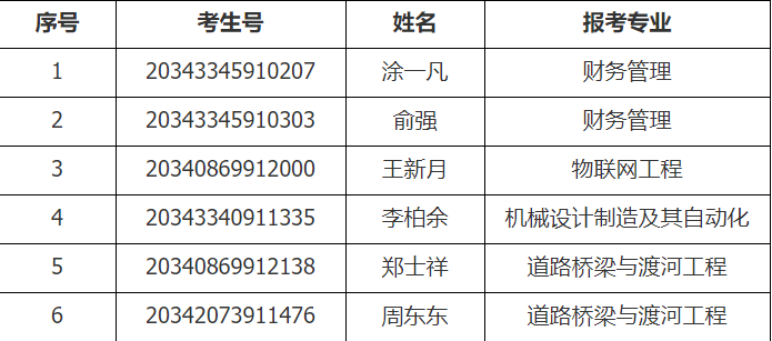 根据《安徽建筑大学城市建设学院2020年普高专升本考试招生章程》规定,经考生本人申报、毕业学校初审,学院审核,涂一凡等6位同学符合学院面试条件,现将面试相关事项通知如下: