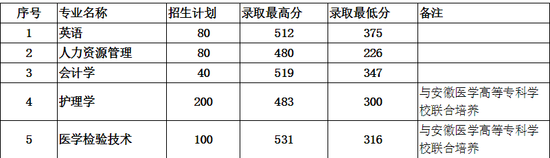 各专业拟录取分数线如下表: