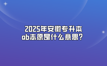 【导读】有同学在问2025年安徽专升本ab志愿是什么意思?可以全报吗?安徽专升本志愿填报网已经为大家准备好了相关内容,希望能够对同学们有所帮助!