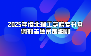 2025年淮北理工学院专升本调剂志愿录取细则还没公布,需要等改院校招生简章公布后才可以看到!